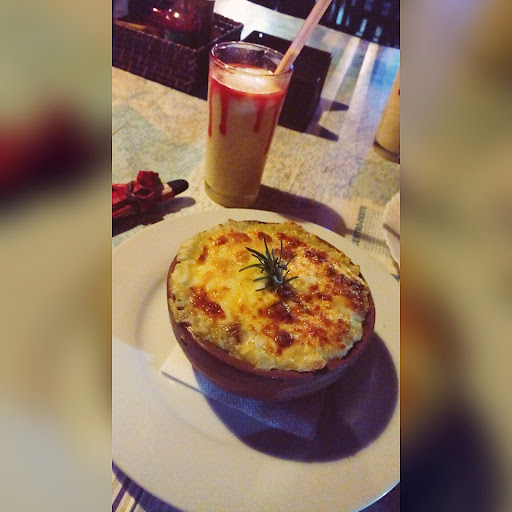 Read moreO local não é bom para fazer refeições. Pra beber e escutar uma música é até ok. Mas a comida é ruim e cara. Não vale a pena. Pode ser que as pizzas prestem, mas não experimentei. Diferentemente do que o estabelecimento respondeu no comentário, eu não pedi um cuscuz marroquino com especiarias, mas sim um trivial camarões com champignon acompanhado de arroz, mais se assemelhando a um strogonoff, como se pode ver na foto. Das duas, uma: ou me confundiu com outro cliente ou inventou essa estória de cuscuz marroquino, colocando a culpa no meu paladar. Lamentável! Quando falei comida ruim e cara, é que você pode comer na ruazinha dos restaurantes pagando o mesmo por uma comida...