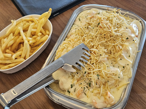Read moreComida é boa, mas os pratos ensopados e moquecas exageram na cebola! Camarao e peixe ensopado vem mais tomate e cebola que qualquer coisa. O tamanho dos pratos também diminuiu muito, deixando de ser fartos. Atendimento dos garçons é o diferencial, excelente! Preço bom, mas não chega a ser barato! Mas o ambiente precisa melhorar muitíssimo. Embaixo você não aguenta o calor e a música alta nas caixas, tocando um estilo só de música que lhe estressa. Já lá encima, embora sem música, a acústica do ambiente é péssima, as pessoas falando mais parece que você está numa feira livre. Não estou levando boas lembranças dessa vez. O que me fez voltar várias vezes já não existe mais. Sim, o estacionamento é péssimo. Na rua fica tudo lotado, vc tem que deixar longe. E os guardadores do local não são muito amigáveis, pelo menos na minha...