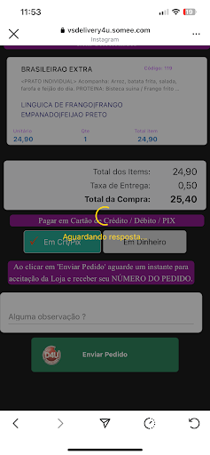 Fizemos um pedido, no site foi informado um valor de taxa de entrega, o pedido foi confirmado e aceito pelo restaurante. Depois de quase 30 minutos, entraram em contato falando: “o site tá com um erro e não foi adicionada a taxa de entrega. É 10,00 e se a senhora não quiser, vamos cancelar o pedido.”