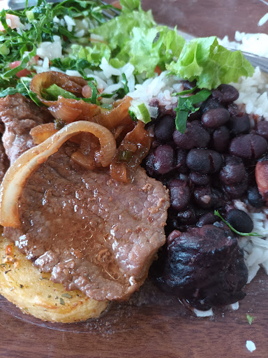Read moreComida realmente caseira!! Local muito bem estourado, arejado e limpo. Hoje veio dois tipos de feijão, bisteca acebolada (espetacular), tilápia empanada, frango ao molho, torresmo, salada verde, tomate, cebola em conserva, farofa caseira, maionese, mandioca, batata frita, beterraba, ovo frito e arroz branco. E tudo à vontade!!! Cardápio caseiro, mas muito bom mesmo!!! Com tanta opção,...