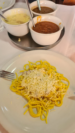 Restaurante de massas com cardápio à la carte e rodízio. Optei pelo rodízio e achei bem diversificado, com saladas de entrada, massas variadas, pizzas e sobremesas, inclusive. Gostei muito da massa, achei bem leve e gostei também dos molhos. O molho ao sugo é de tomate de verdade. Restaurante com preço justo e bem localizado. Só não tem estacionamento, mas dá para deixar o carro no estacionamento do Shopping que é próximo. Gostei muito!