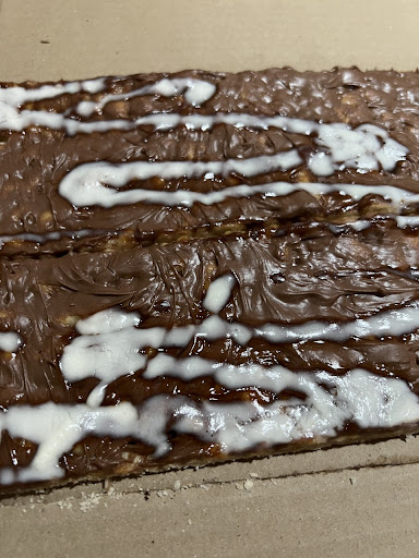 A pizza salgada é boa. Nada espetacular, mas OK. Não curto muito massa fina, mas tem um preço justo. Beleza! O problema mesmo foi quando eu resolvi pedir uma doce. Pedi uma grande, sabor chocolate com creme de leite. Sem dúvidas, a pior pizza doce das nossas vidas. Tem um visual de gosto bem duvidoso, mas vamos falar somente do sabor. A massa é um biscoito, a calda de chocolate é sem gosto, mas o pior de tudo é um creme branco jogado por cima. Este creme é horrível, estraga completamente a pizza. Comi um pedaço, minha esposa outro e infelizmente o resto...