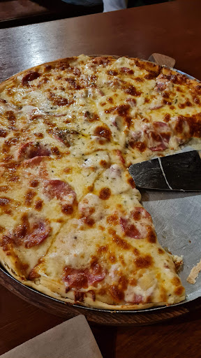 Read moreO lugar é simples, mesas com bancos rústicos sem encosto para as costas. O atendimento é simpático. Pedi uma pizza grande de calabresa (com massa de aipim) para um casal. A pizza é suculenta e não conseguimos comê-la toda, levamos para viagem umas 2 ou 3 fatias. Confesso que não percebi muita diferença na massa de aipim, parece uma massa normal, mas tive a mesma impressão numa outra pizzaria que visitei em Lumiar, realmente não sei exatamente qual é a diferença para a massa de aipim. Em resumo, foi uma boa pizza, mas nada de especial para destacar na...