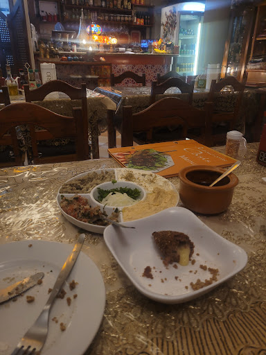 Chegamos para almoçar num horário já um pouco avançado, e pudemos contar com toda a atenção da proprietária Marlene e suas simpáticas colaboradoras. O restaurante é acolhedor e não dispensa nenhum detalhe para situar o visitante no clima oriental. Anfitriã inata (não a toa está à frente do estabelecimento há 33 anos), Dona Marlene nos acolheu na incursão pela gastronomia árabe oferecendo-nos quibes como entrada e já nos apresentando um promissor molho de melaço de romã para experimentarmos. Leves e saborosos, a iguaria tinha o equilíbrio ideal entre temperos, carne e trigo. Como prato principal, a recomendação foi o "especial de carneiro", que serve bem duas pessoas e consiste na carne do ovino acebolada, no arroz com lentilha e cebolas fritas e coalhada (consistência irretocável e acidez perfeita) com tabule, este também com os ingredientes em total harmonia, sem aquele excesso de trigo que alguns lugares insistem em servir para empapuçar o cliente. Todos os itens muito bem preparados e com paladar delicado. Para fechar, não pudemos resistir aos doces típicos recheados de amêndoas, castanhas e nozes caramelizados. Provamos duas variações, a cestinha de amêndoas e o faisalie, que tem nozes e castanhas envoltas por uma crocante rede de knefe num formato de esfiha triangular fechada. Irresistível! Tudo se encerra com a cortesia de um suave chá de hortelã servido em charmoso jogo de chá em prata. Com direito ainda a amêndoas confeitadas. Além do atendimento caloroso, da boa conversa e da refeição divina, o preço é justíssimo. Come-se bem em qualidade e quantidade e se sai pra lá de nutrido no...