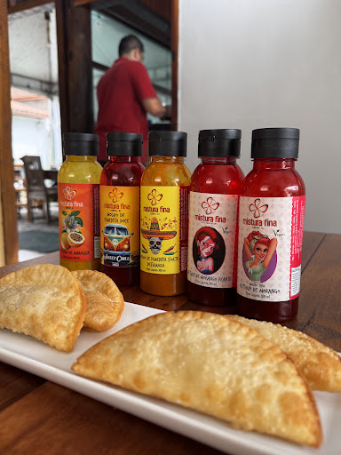 Inicialmente pedimos a porção de quatro pastéis, prontamente foi posta a mesa uma boa variedade de molhos, algo que eu nunca tinha visto, bem gostosa, produção local e é possível comprar para levar pra casa no mesmo local, pastel bem saboroso, sem qualquer resquício de gordura na sua Massa.