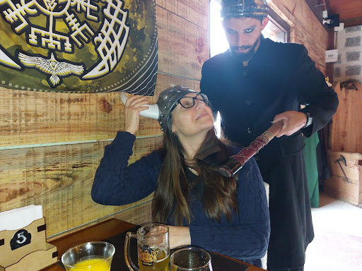 O bar é temático, baseado na cultura viking, com itens super lindos decorando todo lugar e algumas coisas que você pode usar para tirar fotos: roupas, chapéu de chifre, espadas, lanças e até um trono de madeira.