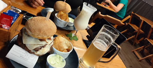 O local é interessante e espaçoso, com área externa e alguns pavimentos. Achamos que os hambúrgueres possuem um bom custo-benefício, mas eles se desmontam nas mãos e os sabores não são tão marcantes. O suco de laranja que pedi foi feito com mais água do que fruta, não pediria novamente. O atendimento é educado, porém demorado. Os hambúrgueres demoraram a chegar, depois as bebidas também e raramente aparecia alguém na área externa para nos atender. No total ficamos desanimados de dar outra...