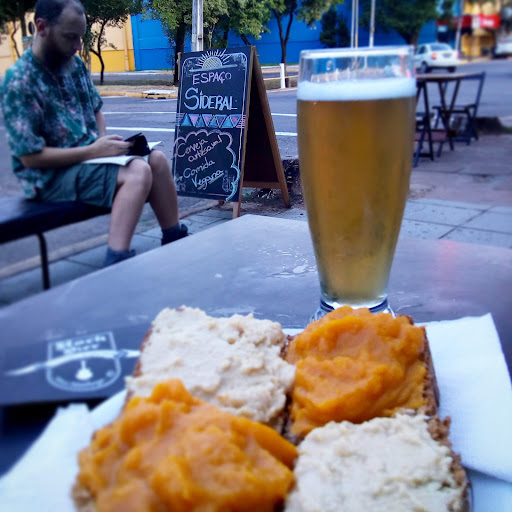 Disparado o melhor chopp witbier que já experimentei! Mega leve e saboroso. O copo de 300 ml saiu por R$ 9,00. Provamos também o prato da casa, primeiro eu não quis experimentar, mas por sorte mudei de ideia! Gente, o que é aquele pão? Simplesmente delicioso! É uma fatia generosa de pão integral quentinho, tem três opções de pasta: moranga com curry; pasta de grão de bico, alho (e um tempero que agora não lembro o nome); e pasta de amendoim. Saiu em torno de R$10,00. O local é muito rústico, mas fomos muito bem recebidos....