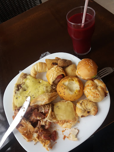 Nos servimos no que eu chamaria de "mini café colonial", que é apenas por quilo. Tem uma variedade boa de doces e salgados e estão muito bem arrumados e apresentáveis. Principalmente os doces. Tem algumas opções de torta também. Porém os salgados não estavam mais quentes.