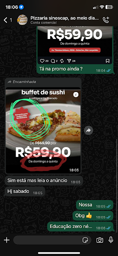Read moreFiz uma encomenda por telefone,disseram que iam ligar de volta quando estivesse pronto,não ninguém ligou,além disso eu liguei e perguntei,chegando lá pegaram dinheiro da minha mão com pouco caso,agradeceu a compra e simplesmente disse tá ali tua encomenda,nem na minha mão entregou isso que nao ia atender ninguém,simplesmente um pouco de educação do rapaz do caixa que acredito ser o dono,com certeza teria mais clientes,e ninguém reclamaria do valor,pois é preciso qualidade e educação para se ter clientela,e melhor divulgação do que a experiência de um cliente não há.Aprenda com seus erros seu bolso agradecerá com...