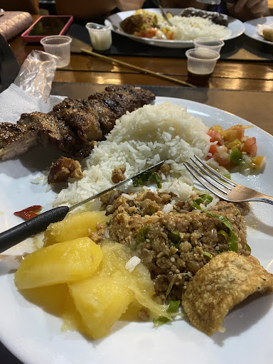 Sobre os espetos, também fica um ponto de atenção, não perguntam qual o ponto da carne preferido e mesmo informando o ponto desejado, veio muito bem passado, quase para queimado. Deixando a carne dura e de um jeito que não me agrada. O feijão tropeiro não me agradou, o arroz, mandioca e vinagrete estavam excelentes.