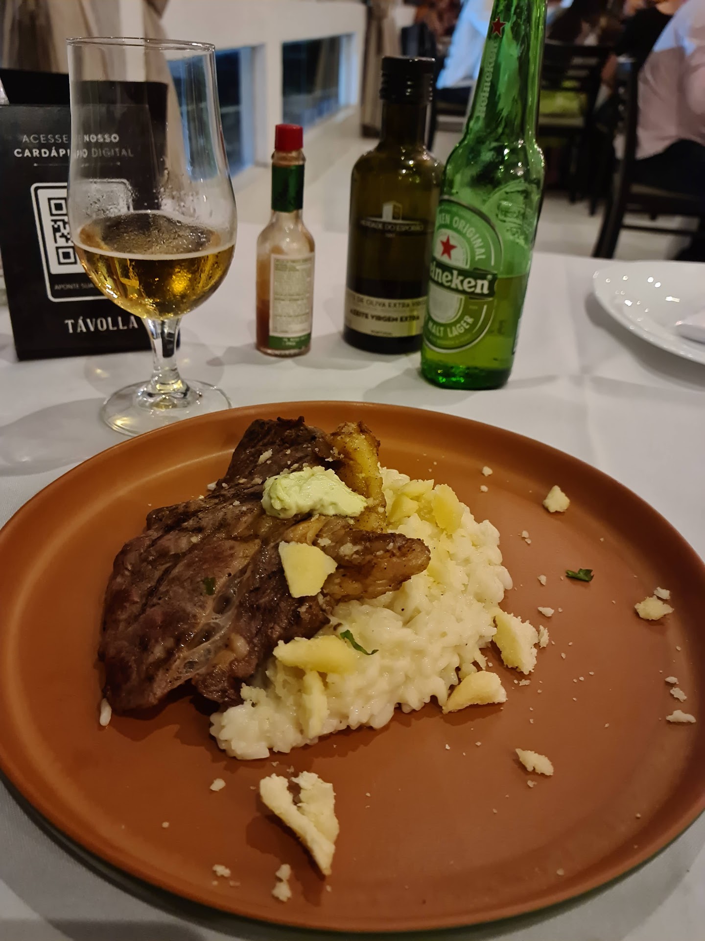 Read moreAtendimento satisfatório, restaurante com uma decoração interessante, contudo a acústica do ambiente é péssima, parece que estamos numa pizzaria lotada e a a confusão de vozes conversando. Quanto ao cardápio limitado, ou você come arroz ou massa, sim os pratos se resume risoto ou massas, para não ser injusto tem dois que vem com batatas rústicas, mas pode vir com arroz tbm. Uma única opção de Salmão. Pedir um entre corte de Angus, carne sem gosto e com dois dedos de pura gordura. Risoto siciliano sem sabor meio aguado, economia de queijos. Foram gentis, o gerente trocou o prato por um filé com redução de vinho mas o outro risoto fraco do mesmo jeito. Comi mais o Filé e ainda deixei o risoto no prato de tão sem graça. Valores dos pratos salgados, esse da...