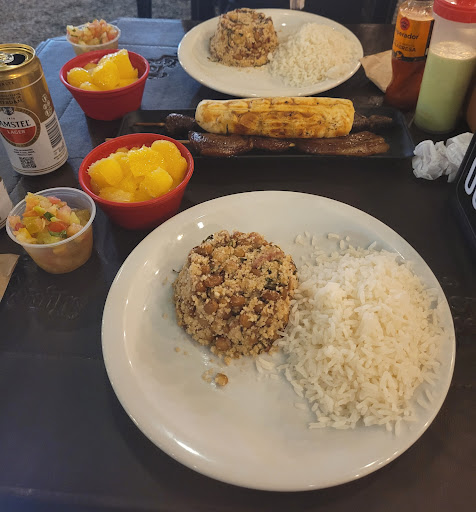 Mandioca estava uma delícia tão molinha que era quase um purê. Bom feijão tropeiro com pedacinhos torresmo, e tinha um molhinho q não sei do que era mas estava bom.