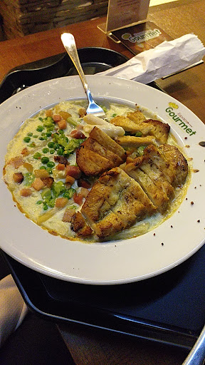 Read moreAmbiente ótimo, atendimento médio mas a comida sem condições de comer Pedi um penne ao molho branco com frango. horrivel!! frango estava sem gosto algum parecia aqueles peito de frango q compra temperado do açougue que só fritou não passou nem um salzinho horrível!!! Meu marido pediu um gratinado com gosto de só extrato de tomate, mais nada. Muitos decepcionados pois o não ficou barato e só comemos uma garfada E deixamos tudo no prato. Isso aconteceu no dia...