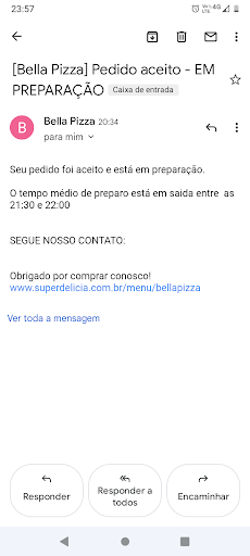 Read morePedi uma pizza 21:35 paguei online mesmo . Foi avisado do tempo estimado , Com duas horas de espera questinoei sobre o tempo e disse que seria 1° e última vez O funcionário respondeu com deboche colocando a culpa na temporada Sendo que fora de temporada a demora é a mesma.