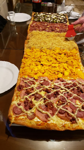 Read moreFomos ao local algumas vezes. As pizzas são deliciosas. Na última visita pedimos a pizza de metro, que deve ter 120 cm mais ou menos. Equivale a mais ou menos 5 pizzas grandes.Pode pedir até 5 sabores entre doces e salgadas. Sempre sobra muita e levamos para casa para saborear no outro dia. Já fomos em 6 adultos e 2 crianças grandes hehe, e ainda assim sobrou muita pizza.As doces são mais restritas porque como são assadas e vem tudo na mesma hora em uma pedra gigante, acaba que não são todas as doces que podem ser pedidas, queriamos a de sorvete e não pegamos. Mas a doce que amamos é a de uva que vem com muita uva verde sem sementes, e pedaços de chocolate branco, deliciosa. O local está com o espaço Kids liberado, o que ainda acho perigoso. As mesas estão afastadas mas não sei se suficientes para ir num dia de movimento. Na foto tem a pizza se lombo, nachos, e strogonoff de carne, ...