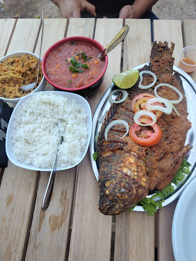 Gostei, que é talvez o único local que atende no almoço até + tarde. Porções são muito bem feitas, tilapia, fritas, polenta e molhinho delícia. Ambiente bem arborizado, mas com um salão tão grande, deveriam instalar alguma climatização para ser mais agradável refeição espaço interno. Também está faltando parquinho...