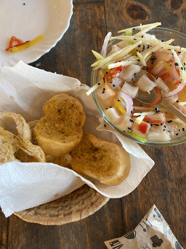 Pedimos ceviche, veio algo com tangerina, maçã e robalo… mas bemmmm longe de ser ceviche. Parecia uma sobremesa.