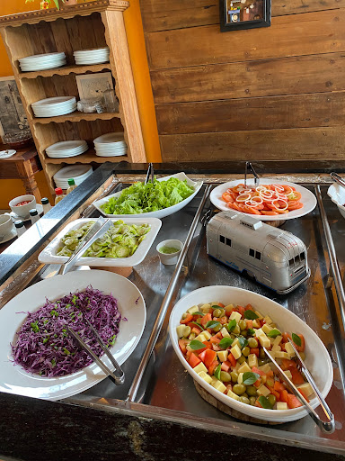 Read morerestaurante por kilo com boa variedade de saladas e verduras , boas opções de pratos quentes com comidas caseiras e da região , linguiça da roça , leitão, torresmo , tutu , quiabo , polenta , ..... , vai com cuidado senão quebra a balança ..., a sobremesa é caseira feita pelos funcionários , a goiabada é sensacional , ah ! , e tem a farofa com bacon muito boa , passa lá, atendimento ótimo , simpatia total , som ambiente agradável ,...