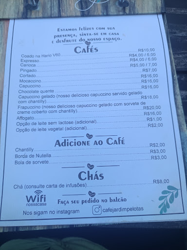 Read moreExcelente cafetería ubicada en una casa ambientada con plantas y jardines. Todo es delicioso. Probamos un capuchino frappé (con caramelo), un mocaccino (en el fondo con chocolate) un pao de queijo solo y otro con tomate secos. Dulce probamos brownie na taça. Excelente la atención y servicio brindado por las muchachas. Mucha tranquilidad en el jardín del fondo. Hay que volver para probar otras cosas...