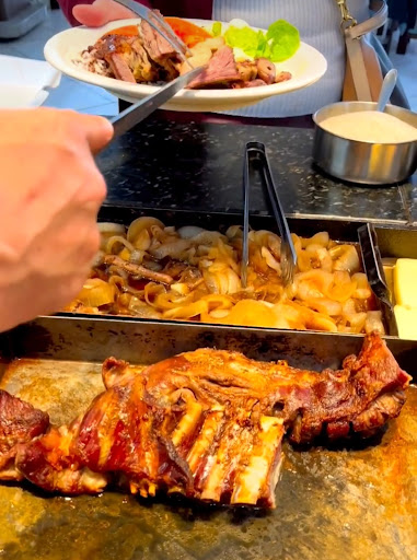 Es un buffet al peso super completo en carnes y ensaladas. En cuanto a los postres se permite uno solo y el resto que deseas consumir cobran 4 reales. Carnes: pollo, vacuna (constantemente están reponiendo y siempre recién cocinada). Ensaladas (destaco la de papa, huevo y perejil) y papas fritas. También habían tallarines con tuco o con salsa de queso. En cuanto a las bebidas, los mozos las brindan en las mesas. Amables y atentos siempre están en el salón recorriendo las mesas. Fuimos al mediodía y no se llenó. El ambiente limpio y ordenado. Postres destaco el flan...