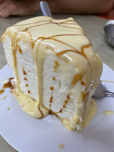 Muy lindo lugar, limpio. Prolijo y buen aspecto a limpio al igual que los baños también limpios. Llegamos tarde y cansados y olvide sacar las fotos por eso solo tomé la foto del postre que venía incluido con el menú turístico que incluía un poquito de asado, otro poco de pollo, un chorizo chico, con el acompañamiento de ensalada lechuga, tomate , cebolla, papas fritas , ensalada rusa arroz y feijoada que estaba muy rica. Las porciones de carne son muy chicas para alguien que coma mucho o venga con hambre de carne. AL menos el menú turístico, no obstante hay mucha variedad de platos para pedir. El Bauru estaba bien era grande con la carne fina.
