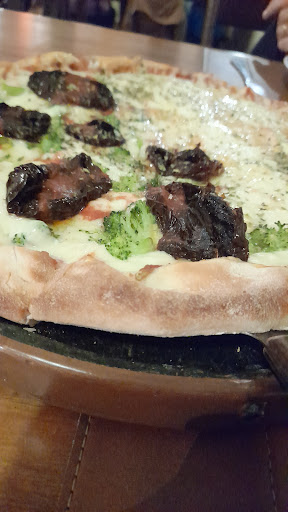 Read moreMaravilhosa! Me surpreendi com o lugar. Atendimento ótimo, atencioso. Música ambiente de boa qualidade. Apesar de ser uma pizzaria de forno a lenha o que me fez entrar, quando vi no cardápio que tinha chivito, não resisti em provar e não me arrependi! Chivito dos Deuses...mas não aguentei e pedi uma pizza doce para provar, confesso que esperava mais dela, mas isso não quer dizer que estivesse ruim...tanto estava deliciosa, que após um chivito como uma pizza pequena de chocolate com....