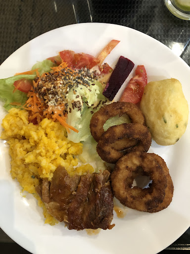 Read morePossui variedade de saladas, quando fui estavam todas frescas e saborosas. Para pessoas veganas tem opções como arroz, feijão, batata frita e bolinhos de feijão/lentilha. No geral, achei a comida bem salgada e isso considero um ponto negativo considerando a proposta do restaurante. A sobremesa que comi, sagu, era cortesia e estava bem saborosa. O preço é ok se for considerar as opções para pessoas...