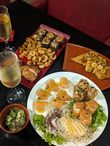 Read moreAtendimento muito bom, lugar bem bacana aconchegante. Mas a comida não é boa muito creem chease e muito arroz nos sushis, pouco peixe e os peixes parecem q estavam ressecados da geladeira, as peças são muito grandes puro arroz empapado, o que mais me deixou indignada foi de pegar 23 reais por taxa de serviço sem nem ao menos ser consultada se queria pagar, quando questionei o que era aquele valor o homem me olhou com cara de pouco caso e disse que era os 10%, como fui muito bem atendida não quis criar caso e não pagar e sinceramente espero q os 10% realmente vá para o garçom que merece muito, não vale o dinheiro todo que gastamos, tem lugares mais em conta e muito mais saboroso. Esqueci de mencionar que o buffet quase não tem nada, muito simples todas as peças ressecadas, alga do sushi murcha, e o molho tarê...