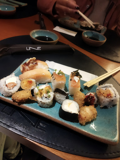 Read moreOntem infelizmente tive o desprazer de escolher o Une para comemorar meu aniversário de namoro. Pegamos uma sequência premium e simplesmente não tinha mais de 5 opções do cardápio, sendo elas: -Bolinho de salmão -sashimi ouro 4k -passion fruit -harumaki de banana e doce de leite -sasshimi com molho especial (não me lembro o nome) -Bananinha com chocolate do buffet Fora isso, uma demorar absurda para receber os pratos, fiquei 40 minutos esperando uma sobremesa para no final me falarem que não tinha a que eu pedi -o Guioza de pernil que eu pedi na ENTRADA até chegou, mas na hora que eu fui embora, e pernil ficou para a memória porque não tinha pernil dentro do Guiosa, somente legumes. Avisei no caixa todos os problemas que enfrentei e a solução foi diminuir R$14 em cada sequencia. Aceitamos pelo desgaste e porque já estávamos cansados de esperar alguma solução ou uma melhora no atendimento. Os garçons atenderam bem, pois infelizmente a culpa não era deles, mas inviável retornar ao restaurante após essa péssima...
