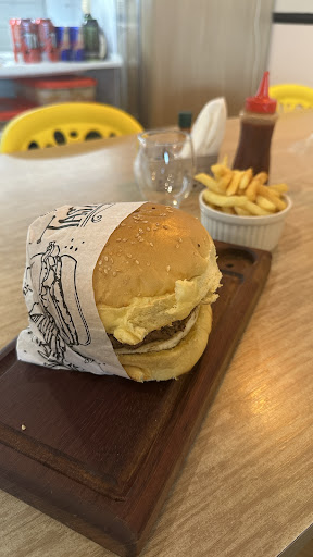 -Primeiro dia pedi um camarão (ele era minúsculo) -Segundo dia pedi esse hambúrguer (o pão não é compatível ao tamanho da carne)
