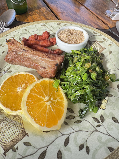 Pedimos o picadinho, a feijoada e o salmão. Cada prato parecia preparado com cuidado e emoção. O picadinho estava simplesmente perfeito, com tempero na medida, arroz soltinho e aquele toque caseiro que remete à comida de mãe. A feijoada, servida no capricho, equilibrava sabor e leveza, ideal até para quem costuma evitar pratos mais pesados. E o salmão… que delícia! Grelhado no ponto certo, suculento, acompanhado por guarnições frescas e muito bem elaboradas.