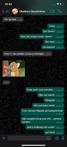 Read moreMinha insatisfação é com o atendimento. Pedi uma refeição mas me recordei que não podia comer um tipo de comida, pedi para trocar e o atendente manda uma figurinha de deboche e diz que já foi para a entrega. Pedi então que cancelasse (em nenhum momento pedi a devolução do pix). Perguntei mais uma vez se não tinha como trocar, e o atendente me ignorou, não falou mais. Fui ao restaurante e devolvi minha refeição. Minha indignação nem é o valor, pois isso eu já esperava, mas fico chateada com a falta de respeito com os clientes! Péssimo atendimento. Era cliente assídua. Sou só mais uma que não faz diferença? Pode ser… mas deixarei aqui registrado a...