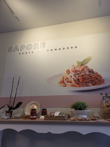 Fui recebido pelo chef Alex, o qual gentilmente me apresentou detalhadamente os produtos das gôndolas e, ao final, nos convidou para degustar as massas ali expostas.
