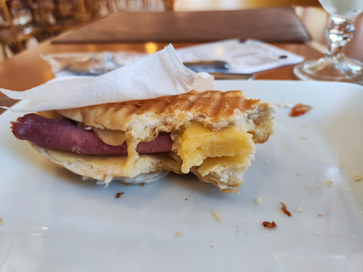 Ambiente bonito, bom atendimento, caro, mas o lanche não condiz com o local. Pedi uma baguete com mortadela e queijo, veio um pão frio, com duas fatias de mortadela e várias fatias de mussarela completamente fria. Basta ver a foto. Tentei comer, mas mesmo com fome, não desceu. Péssima...