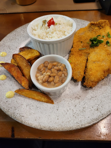 O prato que escolhi foi do cardápio executivo de tilápia que estava maravilhosa. O preço desse prato foi de 35 reais o que achei justo. O arroz e o feijão vem em recipientes separados e achei que bem pouco. Mas a tilápia estava bem grande e muito saborosa. A batata estava super saborosa também.
