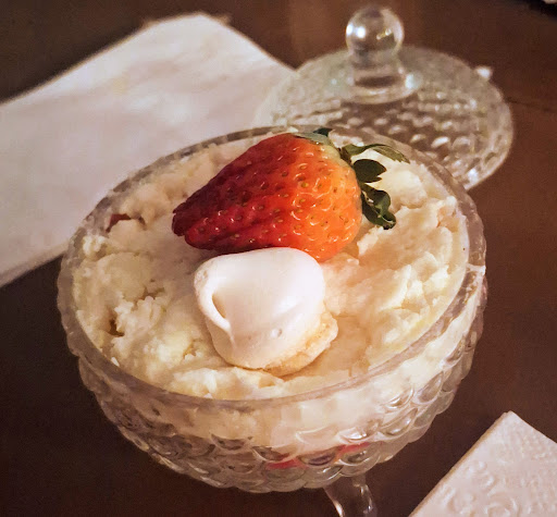 Por fim, para sobremesa, pedimos um merengue de morangos e, pelo menu do chef, veio uma pera ao vinho. As duas estavam ótimas e fecharam a refeição com chave de ouro.