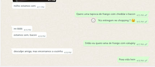 Sou cliente frequente do Restaurante Beira Mar no Shopping Total. Hoje dia 28/06 resolvi realizar um pedido devido a proximidade com a minha casa. Pedi o cardápio, escolhi e antes de pagar perguntei quanto tempo iria demorar a entrega e a resposta: 20 minutos. Paguei, passei meu endereço e fiquei aguardando. Entrei novamente em contato com a atendente devido a demora e a resposta: O motoboy ainda não chegou aqui. Minha conversa teve início às 20:18 hrs e agora são 22:03 hrs e MEU PEDIDO NÃO FOI ENTREGUE!!! Detalhe: O Shopping fecha às 22:00 hrs!! Em resumo: Não comprei na Martignoni devido a distância (em torno de 45 minutos para entregar), optei pela Beira Mar, Paguei e Não recebi o pedido!! Excelente...