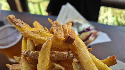 À primeira vista, parece surpreendente encontrar um local especializado em döner kebab (também chamado de churrasquinho grego ou turco, ou, ainda, shawarma) em plena Colônia Witmarsum. Depois, refletindo um pouco, lembramos que na Alemanha atual há muitos imigrantes turcos e que essa iguaria faz muito sucesso por lá, então, nada mais natural que os descendentes de alemães de Witmarsum também a incorporassem. O döner kebab consta de um sanduíche de pão árabe, preenchido com finíssimas fatias de carne assada, provenientes de um grande espeto vertical rotatório, montado em finas camadas, também guarnecido com várias saladas picadas (alface, repolho, pepino, tomate, cebola, etc) e um molho. No "Bier & Döner", encontramos o döner kebab em duas opções, carne bovina e carne de porco, umas seis opções de saladas picadas, a serem escolhidas pelo cliente, e duas opções de molho. Adicionalmente, há duas opções de porções de batata frita (french fries e curly chips) e, para sobremesa, churros (chocolate branco, chocolate preto, queijo) e cheese cake. Como o próprio nome diz, o "Bier & Döner" não se limita aos döners. O local é também um bar de cervejas, oferecendo as deliciosas cervejas da Kunst Brauerei, cervejaria local de Witmarsum. Há taps de IPA, APA, Munich Helles, Vienna Lager, Hefe-weizen, Dunkel, Red Ale, etc, todas excelentes. O local é muito agradável para se ficar em um dia com bom tempo. Possui mesas do lado de fora, com guarda-sóis, em um belo gramado. Também dispõe de amplo estacionamento. No esquema de serviço, com organização germânica, o cliente se dirige ao balcão, recebe uma comanda (na verdade, apenas uma plaquinha com um número de identificação), solicita suas comidas, recebe um indicador eletrônico (para informar quando o prato ficou pronto) e vai, em seguida, ao balcão das bebidas, onde é servido imediatamente. Depois, caminha até a sua mesa levando as bebidas, e, quando o indicador eletrônico soar, volta ao balcão para pegar as comidas. Ao final, após encerrar a refeição, dirige-se ao caixa, com a comanda, e paga. Cartões são aceitos. O local também é pet friendly e é comum nos depararmos com vários cães no gramado, ao lado dos...