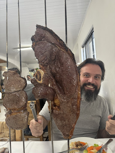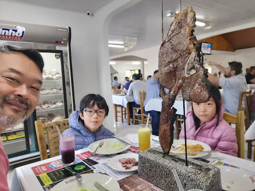 Read moreEm 2018 anotei na minha lista de lugares a visitar na região de Campos Gerais, só em 2022 tive uma boa oportunidade de conhecer. É um lugar bastante conhecido na região, servindo a famosa alcatra no espeto, corte que chama alcatra mas é composto também por picanha, filé mignon e maminha na mesma peça. Vem o espeto com a peça e tem um buffet bem completo de salada, guarnições e sobremesa (nem tão completo esse de sobremesa).