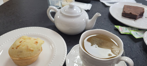 Lugar agradável, preço dentro da média das cafeteiras, atendimento cordial. Vi uma atendente, em um lapso, colocar o copo na bandeja com seu dedo dentro dele. O pão de queijo foi aquecido no micro-ondas. Nesse caso é preciso comer rápido. O bolo de abacaxi com brigadeiro branco e cobertura de suspiro pode ser melhorado. O suspiro poderia ser melhor batido para não ter grãos de açúcar. Senti falta de um sabor contrastante ao doce. Mas se se espera um bolo bem doce com a umidade no ponto, a escolha é acertada. Fazer o próprio chá com o bule de água quente...