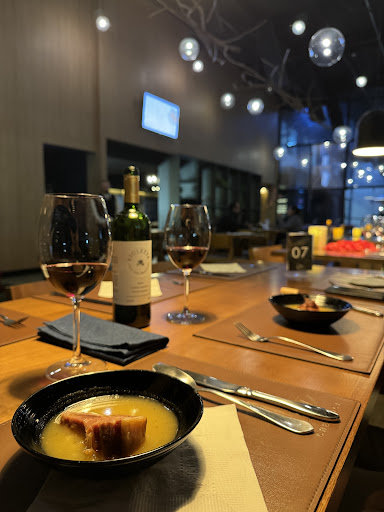 Read morePagamos pelo ambiente e serviço. É um local impecavelmente belo e agradável. A música ao vivo com o Zé Mario deu aquele toque especial ao almoço! Fomos muito bem atendidos por todos. No buffet, elogios ao bacalhau (na nata e português) e ao o vinagrete. A isca de mignon estava fria. O rondelli de queijo tinha muuuuito gorgonzolla (e olhe que como gorgonzolla puro, mas ficou muito forte), e o buffet de feijoada não me arrisquei: era gourmet (sem isso, sem aquilo, sabem? Feijoadas separadas porque tem muita gente fresca???) Não gosto! Gosto de feijoada completa!!! Nada de feijão temperado. O pudin e o creme (creio ser nata batida com chocolate branco) e calda de frutas vermelhas acima, estavam maravilhosos. Foram dois almoços. Dois sucos de uva integral. Dois cafés expresso de cápsula. Mais taxa de...