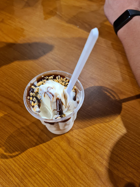 Read moreJá fui outras vezes e estava bem melhor, muito mais limpo e ambiente cheiroso. Facilidade que achei legal que você pode comprar pelo atendimento eletrônico na entrada e tem vários terminais para agilizar o atendimento, pode pagar de forma digital, por cartão, carteira virtual, etc. O sorvete de casquinha só tinha sabor de baunilha, misto não tinha, fizemos o pedido de 2 sundae tradicional mesmo. Quando ficou pronto olhei e falei nossa só isso de cobertura de chocolate, na mesma hora a atendente foi grossa e falou você não pediu calda extra! Falei não pedi, mas achei que viria um pouco mais do que só isso, ela saiu falando lá pra trás com outros funcionários, uma coisa era ela perguntar, outra coisa ser grossa na lata como foi. Embaixo na parte onde tem as mesas ao lado dos brinquedos estava um cheiro muito desagradável de ferro no ar, desde o momento que entramos já senti o mal cheiro. Tinha uma única mesa com resíduos e embalagens vazias quando nos sentamos e assim a mesma ficou até mesmo após sairmos do estabelecimento. Horário que fomos por volta das 22:30h.