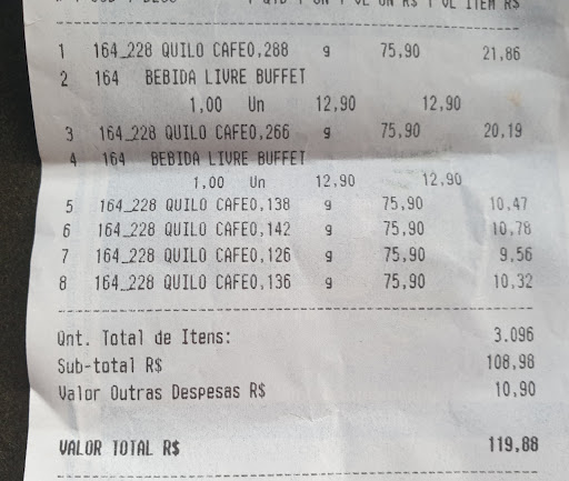 Read moreFomos almoçar num sábado depois de vermos muitas fotos do Instagram, que nos chamaram a atenção. Pensamos que o buffet teria mais "coisas diferentes" e combinações mais variadas, mas não vimos isso. Peguei um pouco do salmão no limão, mas o peixe estava mais seco do que deveria. O mignon estava muito, muito passado, perdeu o ponto e virou borracha. No geral, a proposta é interessante mas a comida não foi condizente nem com a propaganda e nem com o preço. Se encontra comida similar com valor mais em conta. Nota: falta um anteparo de vidro no buffet para evitar saliva de gente falando em cima da comida, bem como luvas descartáveis aos que se servem. Mil mãos pegando na mesma concha/colher pra se servir não é bacana. Sabe-se lá quantas pessoas de mãos sujas se serviram...
