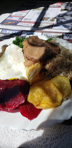 Read moreExcelentes opções de saladas. Comida bem temperada. Atendimento ótimo. Local agradável e muito limpo. Com certeza faz jus às avaliações e notas dos outros usuários. Só não levou 5 estrelas porque a carne bovina não estava muito bem feita, mas haviam outras opções. Paguei 29 no buffet livre, mas há opção por kilo por 52/kg. Recomendo comer aqui do que na estrada. Eu sempre exploro as cidades para almoçar, chega de gastar dinheiro com comida ruim na estrada. Dica ao restaurante: tirem a tv com rede globo e coloquem alguma musica agradável, algo compatível com a arquitetura interna do casarão. Farão sucesso. Imagine uma vitrola ou um...