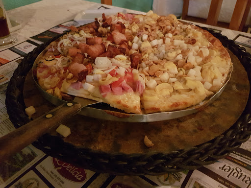Sinceramente...li muitas opiniões positivas e outras nem tanto. Estando hospedada na cidade de Castro, com poucas opções de restaurantes, acabamos optando por este. Lemos boas opiniões sobre as pizzas. Caímos na besteira e pedimos uma. Fiquei muito decepcionada: pizza grosseira, com pedaços gigantes de cada ingrediente, como bacon, alho e tomates, dando a mesma um aspecto desagradável, grotesco e rude. Além do mais, não veio quente. Até pizza de supermercado consegue ser menos trágica do que esta. Ainda, na primeira mesa onde nos sentamos, encontramos "o rastro" dos que lá estiveram antes: restos de arroz seco, restos de comida. Fiquei com nojo.Trocamos de mesa. Não...
