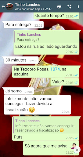 Hoje, passei por um constrangimento enorme nesse local! Cheguei, pedi um lanche, paguei e a moça perguntou se eu estava de carro... Disse que sim. Perguntou o modelo, coisa e tal e disse que levaria o lanche no carro. Depois de mais de 30 minutos esperando, dei a volta na quadra e parei em frente ao estabelecimento, tendo em vista que o movimento estava bem fraco, desci do carro e solicitei a devolução do dinheiro por todo o tempo que estava esperando, sabendo eu que alguém ia levar no carro, conforme o combinado, mas isso não aconteceu. Fizeram a devolução, sem nenhum problema e insistência. Porém, achando que estava tudo certo, tinha uma mesa com 2 casais e os mesmos começaram a zoar de mim pela situação. Não me contive e acabou gerando uma discussão, quase briga e ninguém do estabelecimento tentou apaziguar. Fui embora, com fome e ainda humilhado. Vou procurar meus direitos e processar o estabelecimento. Eu, como consumidor me senti totalmente lesado, humilhado e não volto mais. Não estou reclamando do lanche, pq consumi outras vezes, mas sim da indiferença do estabelecimento,...
