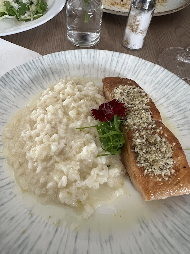 Levaram os dois pratos. Voltaram os dois pratos: carne do meu marido ok, mas acompanhamentos gelados - nem tiveram o trabalho de dar uma aquecida. E o meu foi triste, o salmon gelado pq não mexeram nele, mas o risoto tava cheio de pedaço CRU de cebola. Parece que fizeram na correria e nem refogaram a cebola. Eu tenho pavor de cebola (não tava crua e nem visível no primeiro prato!) tava impossível comer. Sério mesmo, pode até ser frescura minha, mas quem põe cebola crua na comida quente? Decidimos não reclamar mais. Só trocamos de prato pq meu marido gosta de cebola de todo jeito.