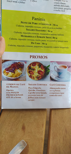 Read moreLocal muito aconchegante com lanches saborosos e requintados. Ganha somente 2 estrelas pelo atendimento: cardápio oferece uma "Salada cortesia" para quem pede Empada ou Quiche; pedimos os dois e ao perguntar sobre a salada, fizeram parecer que estávamos querendo demais e que a salada só era servida no café da manha(apontando rispidamente no cardápio que o horário do café da manhã é só até as 14). Mas em nenhum lugar fala que a "Promo" é só para o café da manhã(vide fotos em anexo). Enfim, você gasta 80 reais com um café da tarde e sai do estabelecimento constrangido com a exposição à uma situação...