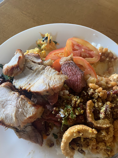 A atendente foi muito simpática e nos explicou que aos domingos a comida era vendida somente por KG. A pista era farta com muitas opções, além do churrasco, optei por um delicioso contra filé suculento, linguiça e lombo fatiado.
